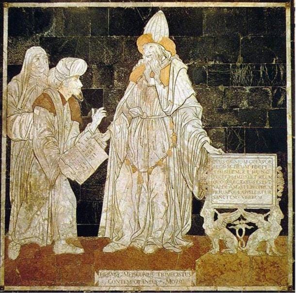 Western esoteric thought has its roots in the Late Antique period in the Eastern Mediterranean. This was an area of the world where east met west. Consequently, this was also an area where the religions and intellectual traditions of Babylon, Persia, Egypt, the Levant and Greece were able to intermingle with each other. Through the mingling of these various traditions, schools of esoteric thought distinct from mainstream Christianity, such as Hermeticism, Gnosticism and Neoplatonism, were born. Texts expounding esoteric teaching were written, and these schools of thoughts spread westwards into Europe. In the 14th and 15th centuries, an esoteric grimoire, known as The Book of Abramelin the Mage was written.