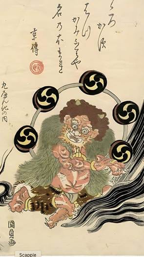Top image: Raijin drawing. 'Party in the Sky', by Utagawa Kunisada (1860). Source: Ukiyo-e.org.