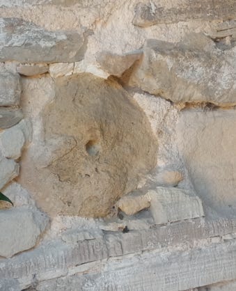 Buried in the wall of an inconsequential stone building, unnoticed and unremarked for generations, is a large, roughly hewn, spherical stone. It looks out of place from all the rectangular stones surrounding it. The fabric of the building is old, though it has evidently been rebuilt at some indeterminate point in the past.