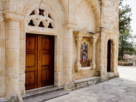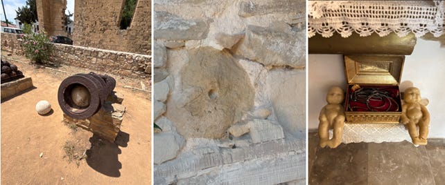 Above the arched entrance door, a date of 1930 has been crudely carved into the stonework, yet the reconstructed building is evidently far older than this. Inside, typical of a number of the more affluent older palati (palace) style stone buildings in the Paphos region of western Cyprus, is a camara or large stone arch. Centrally located, it supports the ceiling beams. It was designed to overcome the limitations in length of available timber and thereby created a larger internal area. The style of construction dates back at least to the Middle Ages. Similar constructions can be found in surviving medieval French domestic buildings.