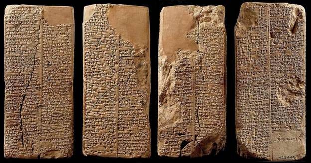 Top image: Weld-Blundell Prism, a clay cuneiform inscribed with the Sumerian Kings List. Source: Public domain