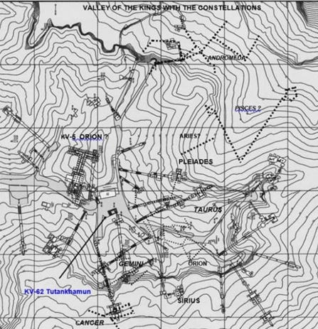 Many other constellations and stars are represented by the chambers in the Valley of the Kings. Perhaps many new chambers could be found by laying a map of the constellations over the Valley of the Kings and searching where the constellations would be located on the ground.